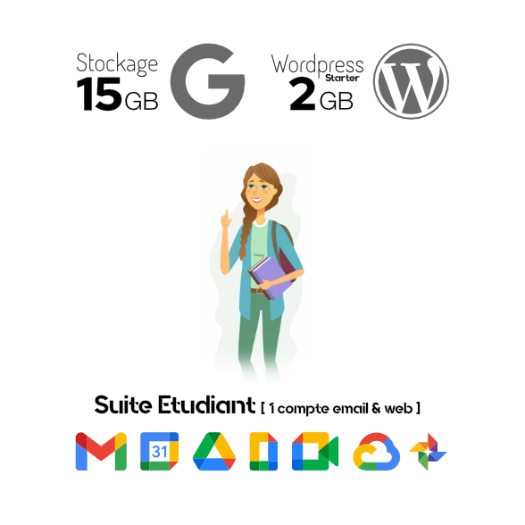 - Un compte Google Workspace incluant un email personalisé @lejeune.fr sur la plateforme Gmail. Stockages (15Gb, 30Gb, 150Gb ou 500Gb)